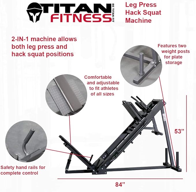 Titan Fitness Leg Press Hack Squat Machine. The Plate-Loaded Linear Hack Squat Machine from Titan Fitness is our dedicated Hack Squat Machine.
